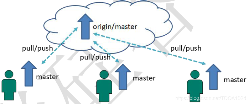 这种方式与SVN 的主要区别就是开发人员有本地库。Git 很多特性并没有用到。