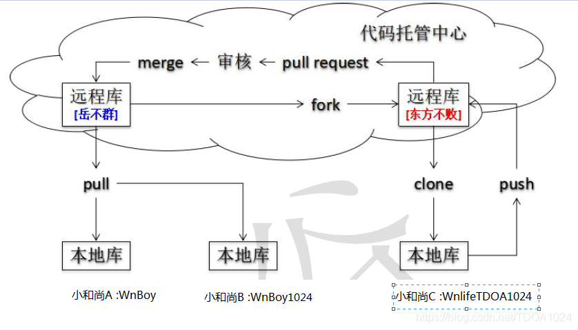 Forking 工作流是在GitFlow 基础上,充分利用了Git 的Fork 和pull request 的功能以达到代码审核的目的。更适合安全可靠地管理大团队的开发者,而且能接受不信任贡献者的提交。