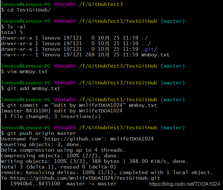 4.10.3 WnlifeTDOA1024: 对这个项目进行一番自己的修改,然后add到暂存区,commit到本地库,最后push到自己的GitHub