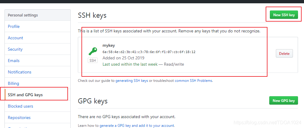 4.11.6 复制id_rsa.pub 文件内容,登录GitHub,点击用户头像→Settings→SSH and GPG keys