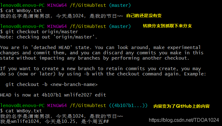 4.9.2 接下来WnBoy1024也对自己本地的文件进行修改,add到缓存区,commit到本地库