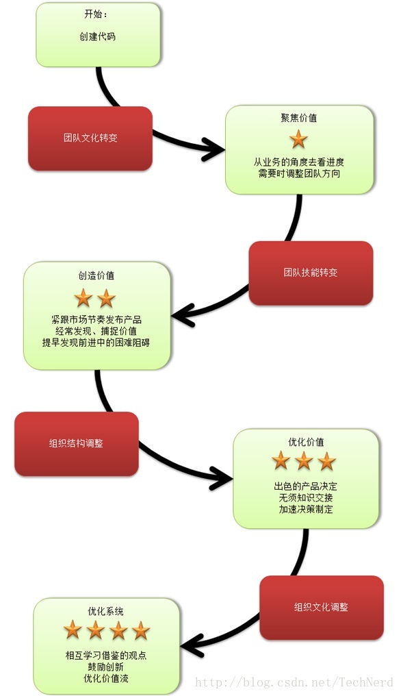 每个星级带来特定的好处,同时,做出改变,以适用不同的星级也是一个挑战。在你通读这篇文章时,请记得每个爽畅性等级带来其对应的好处。因为达到的敏捷爽畅性级别越高,需要的投入越大,那就需要我们仔细考虑一个低级别的敏捷爽畅性是否更适合我们目前所在的组织?