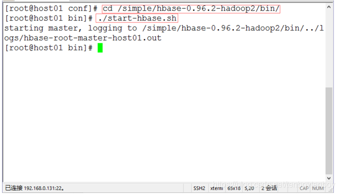 - 启动hbase。进入$HBASE/bin/目录,执行命令./start-hbase.sh。如下图1所示。