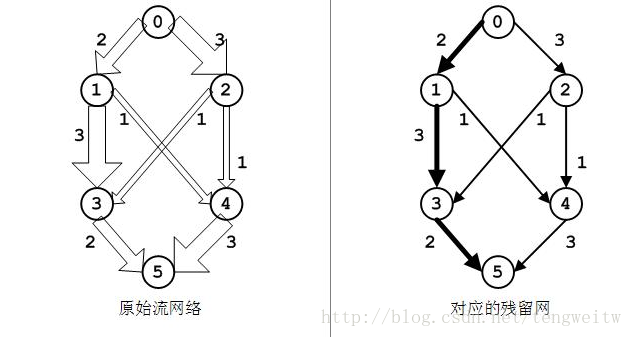 int dist1[N][N]={{0,2,3,0,0,0},//初始的残留网络即为原始网络