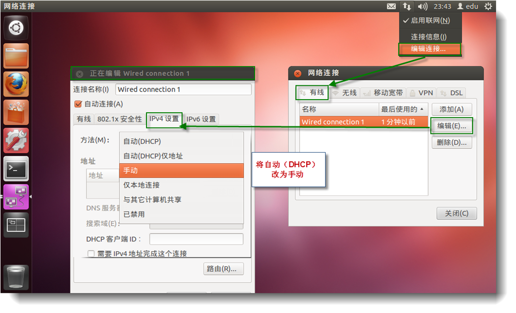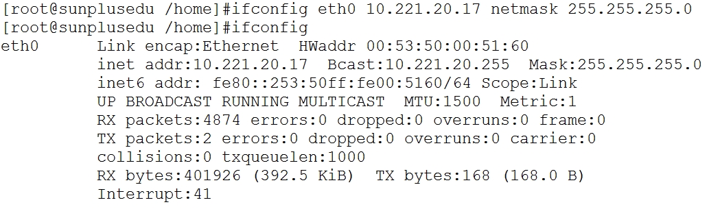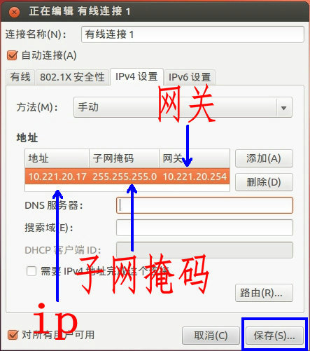在终端里敲:sudo ifconfig eth0 10.221.20.17 netmask 255.255.255.0