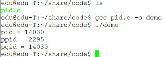Linux 操作系统提供了三个获得进程号的函数 getpid()、getppid()、getpgid()。