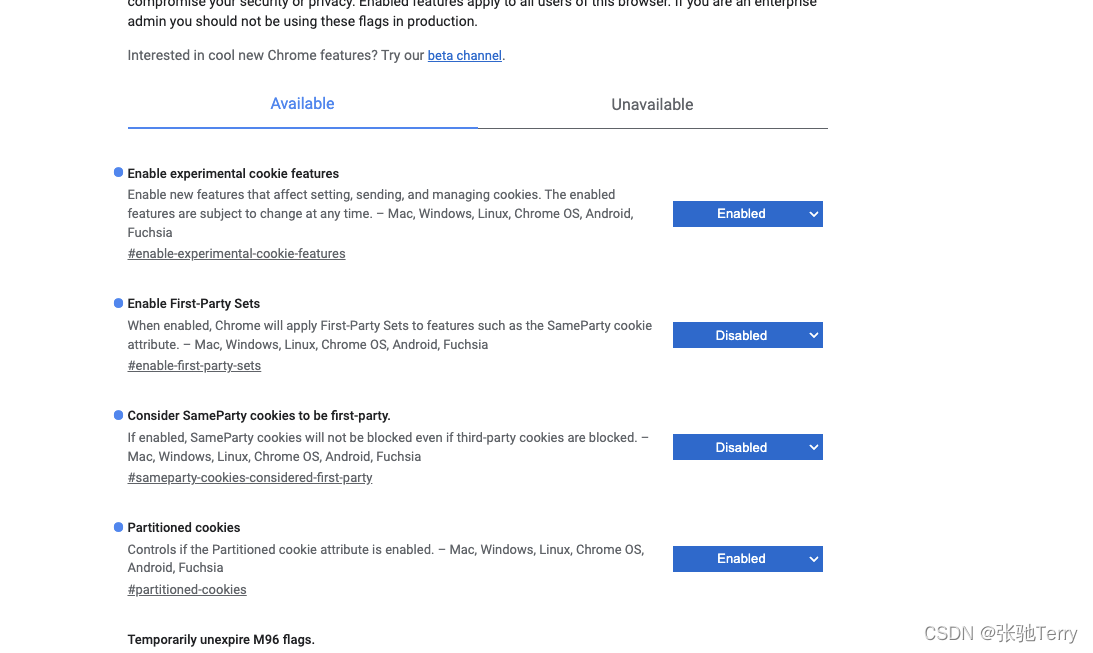 在chrome最新版本升级后,在 Application→Cookie中自由设置cookie受到了限制,为了解决这个问题,我们可以通过访问 chrome://flags/ ,修改以下配置即可