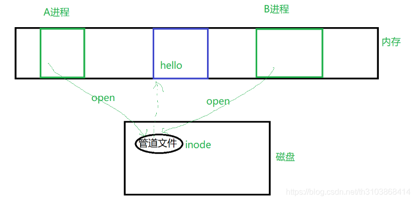 其原理是借助父子进程间共享fork之前打开的文件描述符,无名管道的数据内容也存在内存上,仅限于父子进程之间。