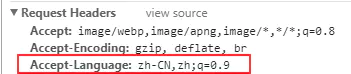 我们能从请求头中获取到浏览器愿意接收的语言类型