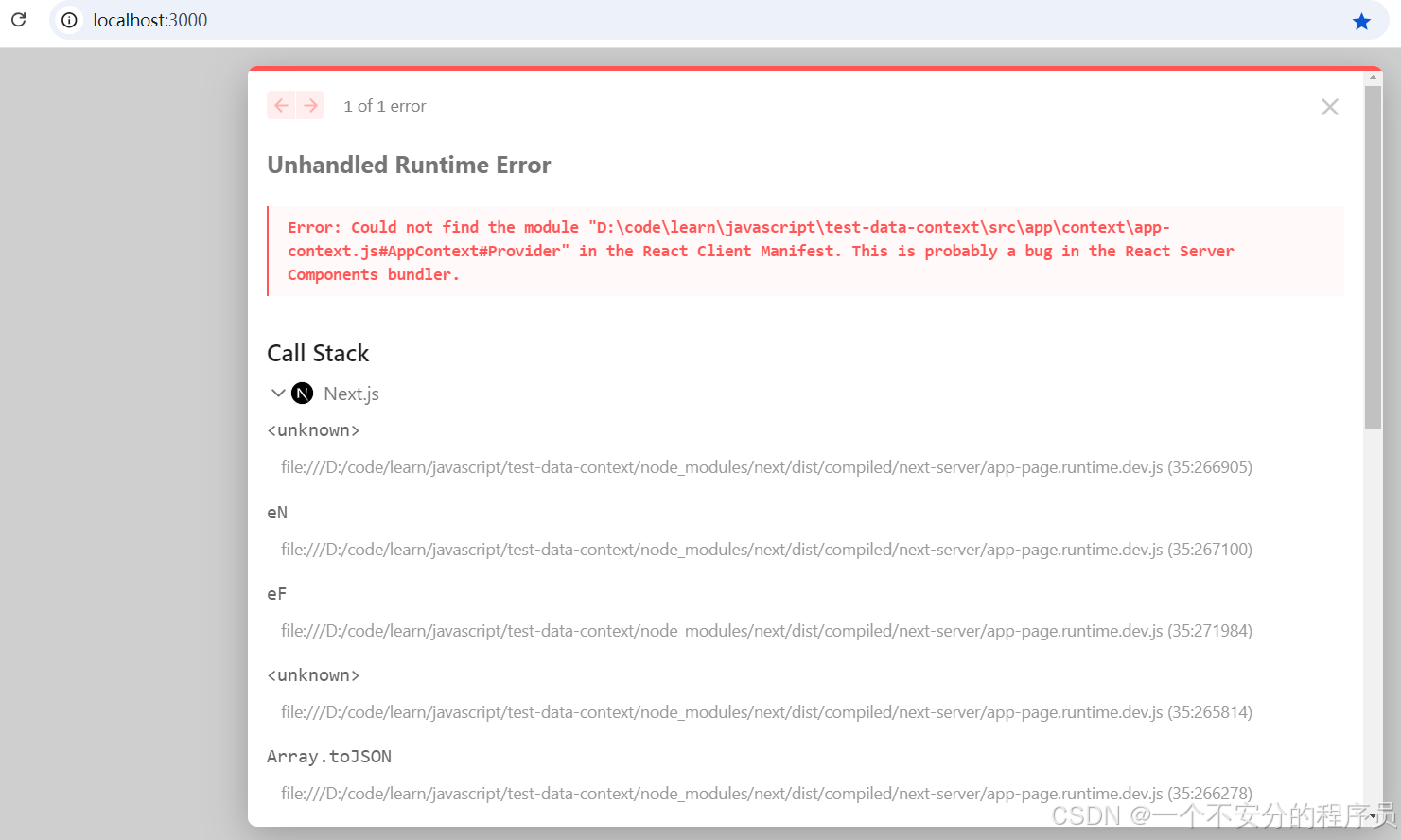 Error: Could not find the module "D:\code\learn\javascript\test-data-context\src\app\context\app-context.js#AppContext#Provider" in the React Client Manifest. This is probably a bug in the React Server Components bundler.