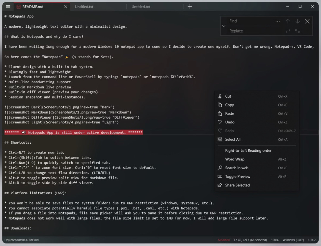 还在忍受Windows自带记事本的"老干部"界面?🤔 今天给兄弟们安利一款让我相见恨晚的开源文本编辑神器——Notepads,轻量如羽毛却强过专业工具,彻底颠覆你对记事本的认知!