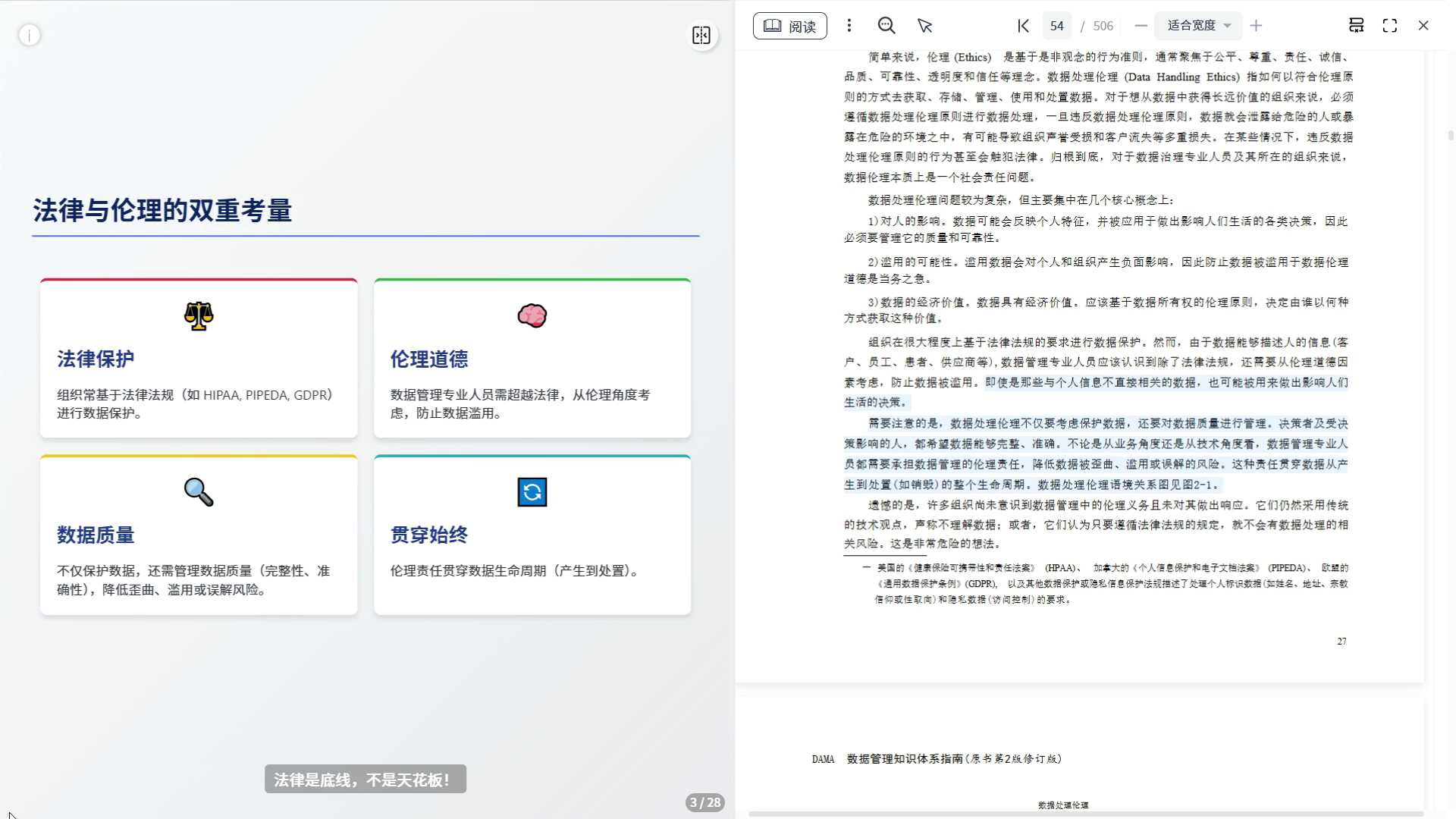 法律管的是最坏的情况,伦理要考虑的是所有情况。数据质量差,就算合法也可能误伤人。所以数据管理不只是技术活,更是良心活。从头到尾都要考虑伦理,别等出了事再哭,这点想不明白,趁早改行~~~~。