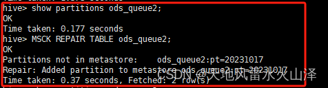 hive> MSCK REPAIR TABLE ods_queue2;