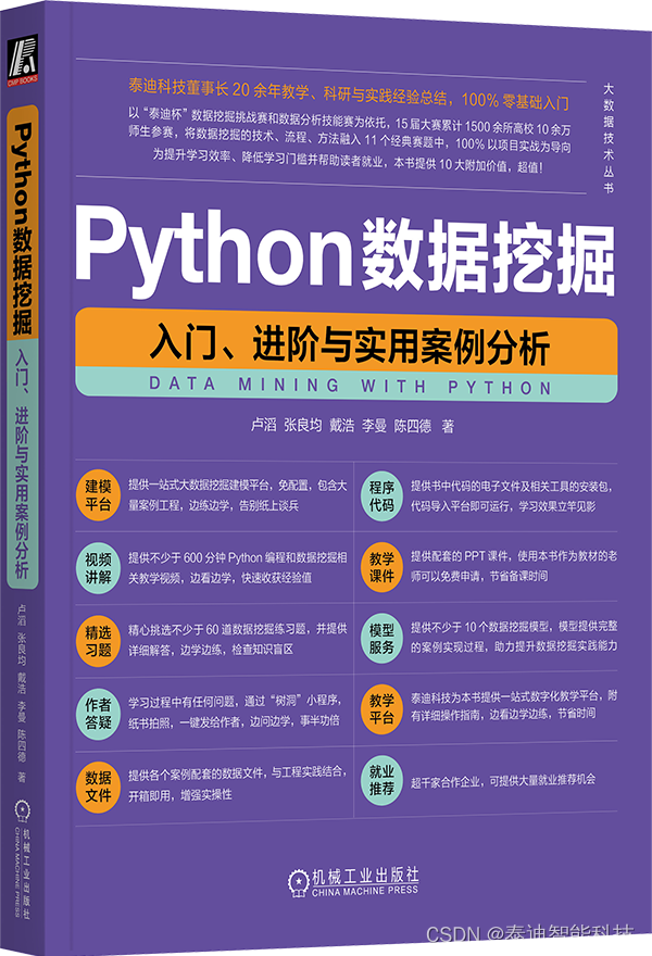 本书结合11个“泰迪杯”赛题,由浅入深介绍数据挖掘技术在多行业的应用。编排贴合实际业务场景,从案例背景和目标入手解决业务问题。还具备多种学习资源,如代码、视频等,能助力提升数据挖掘实践能力,并有就业推荐机会。