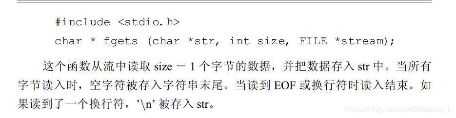 这个函数就是用来操作字符串的。是从一个文件流中获取字符串,注意只是字符串。有一个地方需要注意的,fgets()函数会读入换行符'\n',并且在读入换行符之后立刻返回,换行符之后的字符串不会被读取。