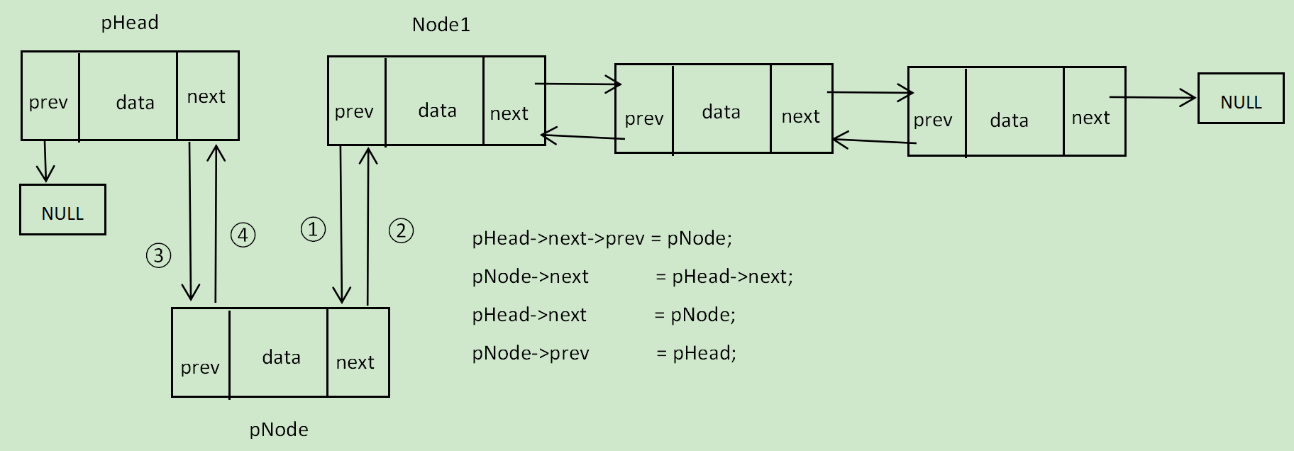 pNode->prev = pHead;
