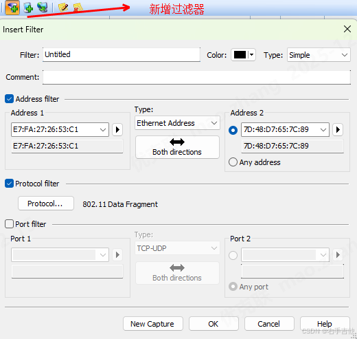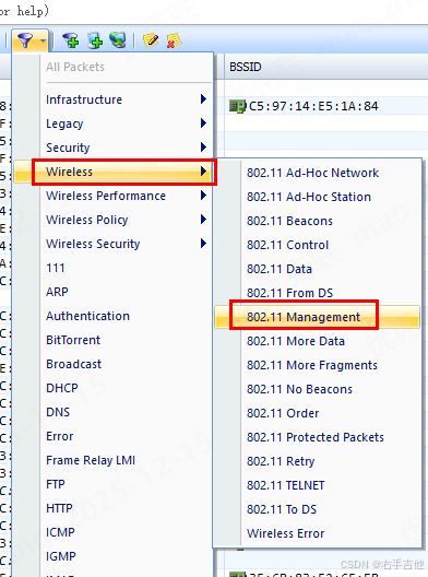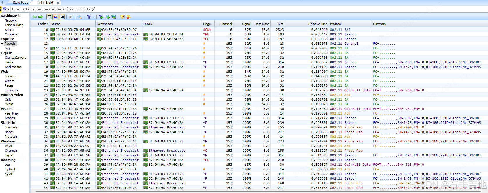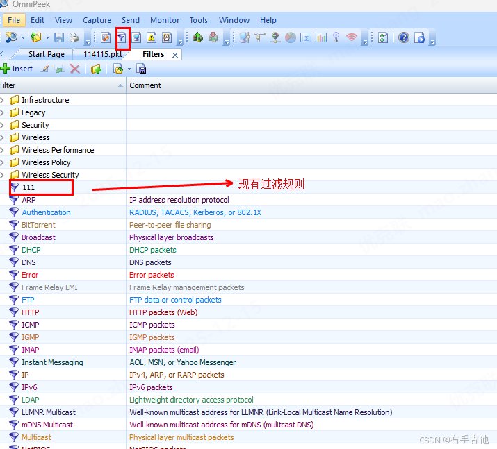 Omnipeek自带了很多过滤器,比如直接按无线线协议进行过滤,如果80211的管理帧,控制帧等
