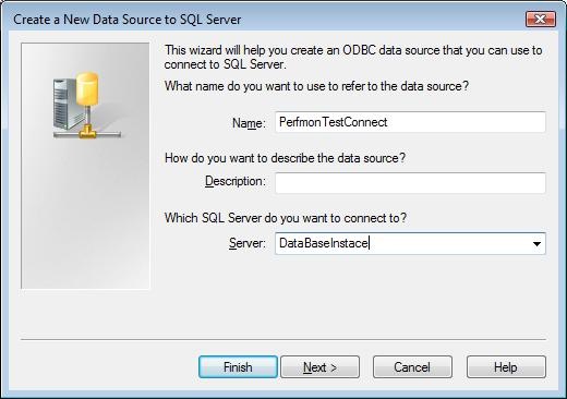 Name填入:PerfmonTestConnect,Server填入你的数据库连接实例名,Next