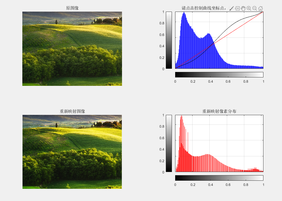 【图像处理】PS曲线工具matlab实现 交互自定义灰度映射(Gray Level Transformation)附代码链接 效果预览:代码链接:https://download.csdn.net/download/tkl32172/68153652灰度映射基础:常见的灰度变换灰度变换函数描述了输入灰度值和输出灰度值之间变换关系,一旦灰度变换函数确定下来了,那么其输出的灰度值也就确定了。可见灰度变换函数的性质就决定了灰度变换所能达到的效果。用于图像灰度变换的函数主要有以下三种:不同映射方法有增强、反向、边缘&区域提取等不同效果,代码实现了自定义映射函数的变换过程,改变代码中yf变量即可实现。...