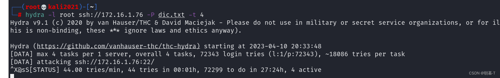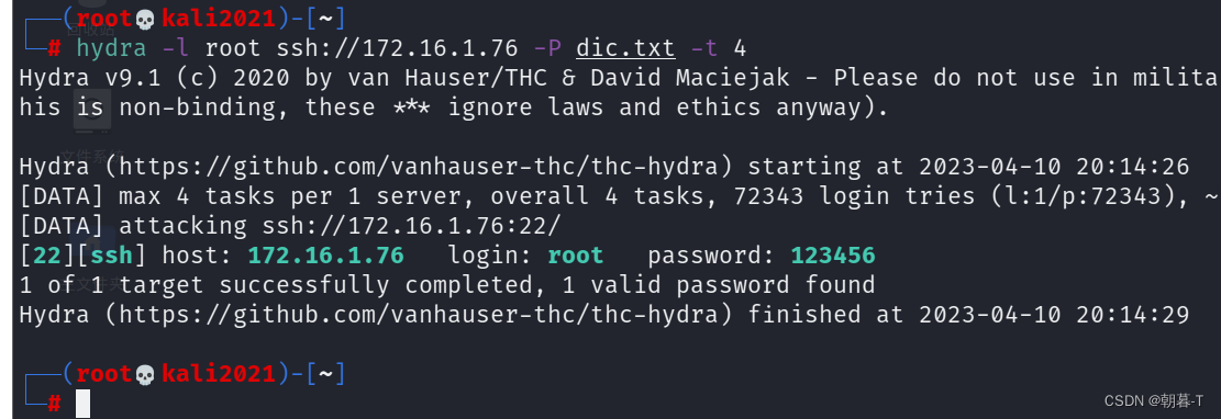 再次经过hydra进行爆破,发现已经爆不出来了,加固成功