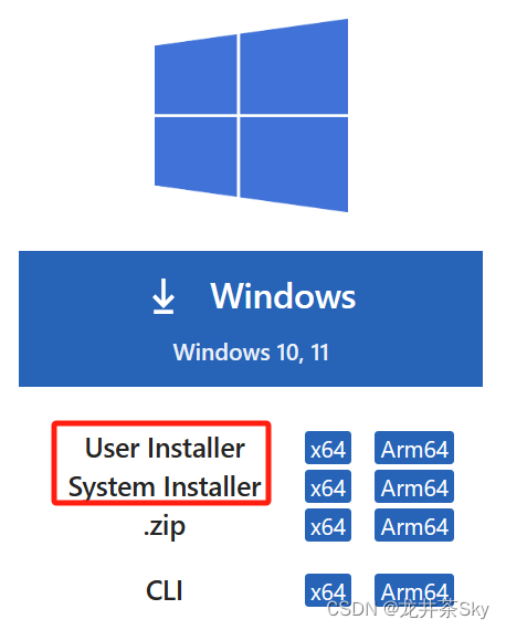 官网直接下载安装即可,注意这里有user版和system版区分,其实主要就是安装路径不太一样,我也是后来换电脑重新安装才发现这么回事。user版给你安装到了当前用户文件夹下,system版安装到系统文件夹下