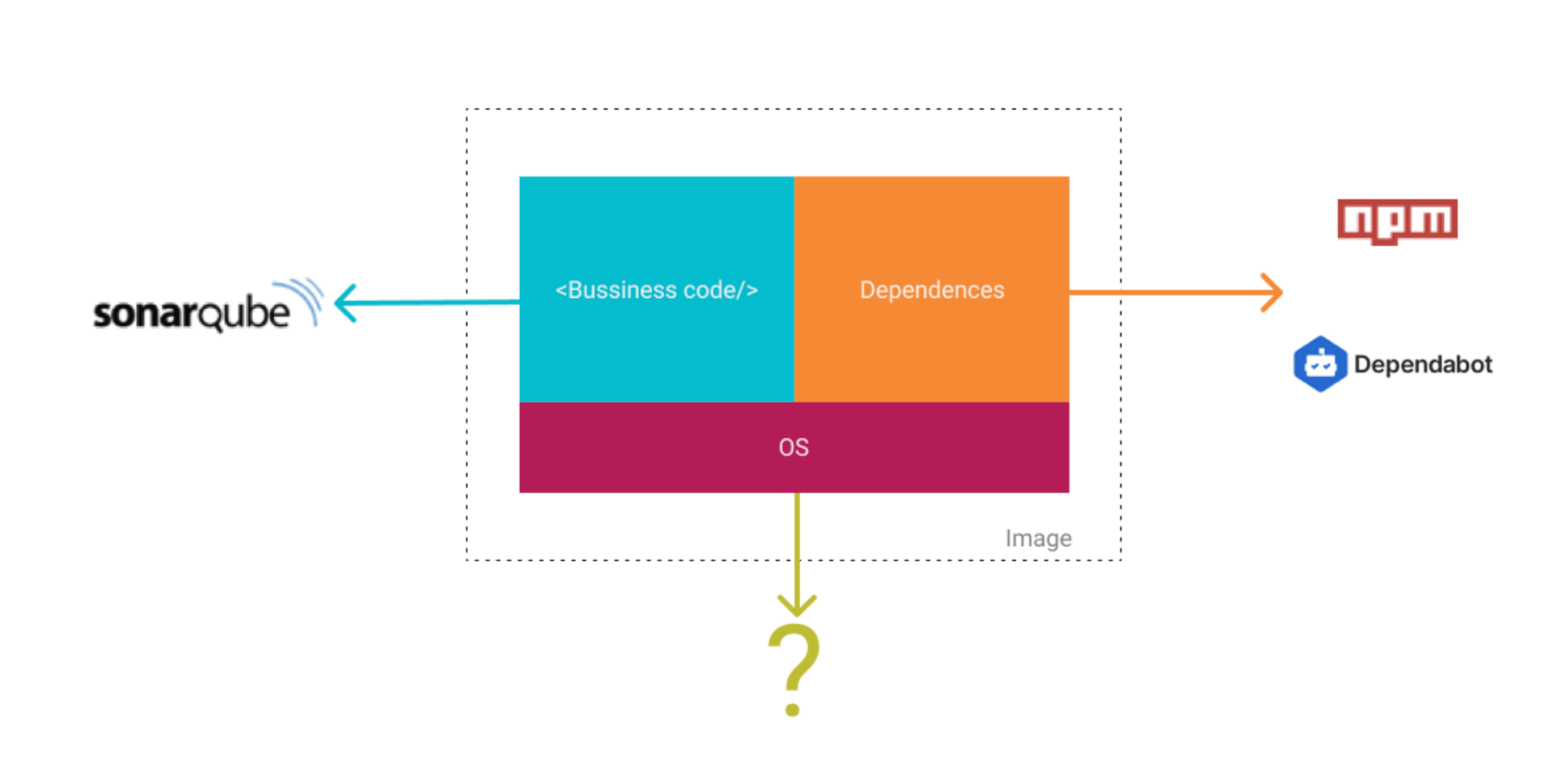 现在,我们使用先进的技术来构建我们的应用程序,如 NodeJS、 Java 和 Kotlin 等,然后将代码库存储在托管的 Git 平台上,如 GitHub、Gitlab 等。代码库由我们的业务代码和依赖关系组成;对于依赖项,我们可以使用专业的扫描工具来确保安全,比如 NodeJS 的 npm audit , GitHub 的 Dependabot;至于我们的业务代码,可以使用其他的一些安全工具可以扫描,比如 SoneQube 等。