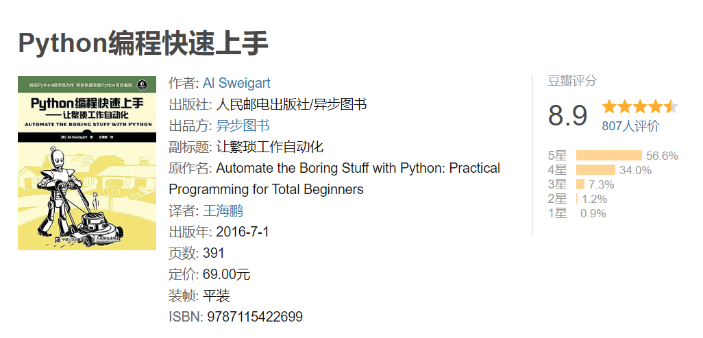 高效学Python,不得不提到这本Python入门书,他在美亚排名前三、中文版畅销超20万册,豆瓣评分8.9的入门书《Python编程快速上手——让繁琐工作自动化》,近期第二版的中文版终于上市了。