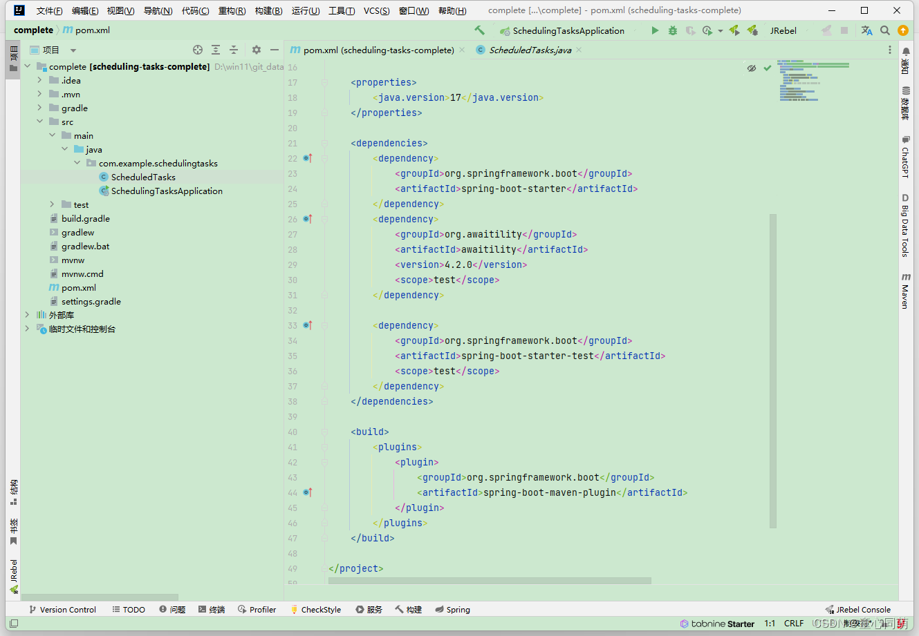 1.源码克隆:git clone https://github.com/spring-guides/gs-scheduling-tasks.git 2.包含两个项目initial和complete,initial可以根据文档练习完善,complete是完整项目 3.功能描述:构建应用程序,使用 Spring 的注释 @Scheduled 实现每五秒打印一次当前时间