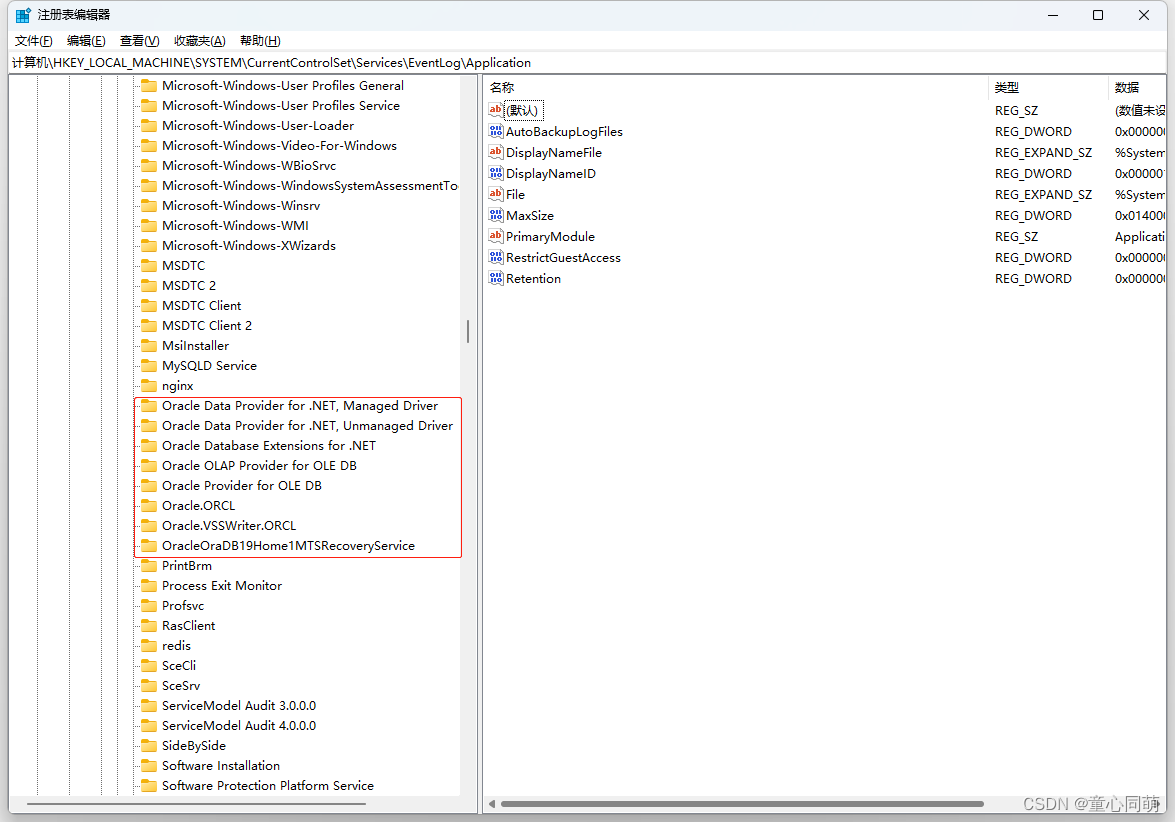 删除HKEY_LOCAL_MACHINE\SYSTEM\CurrentControlSet\Services\EventLog\Application下Oracle相关目录