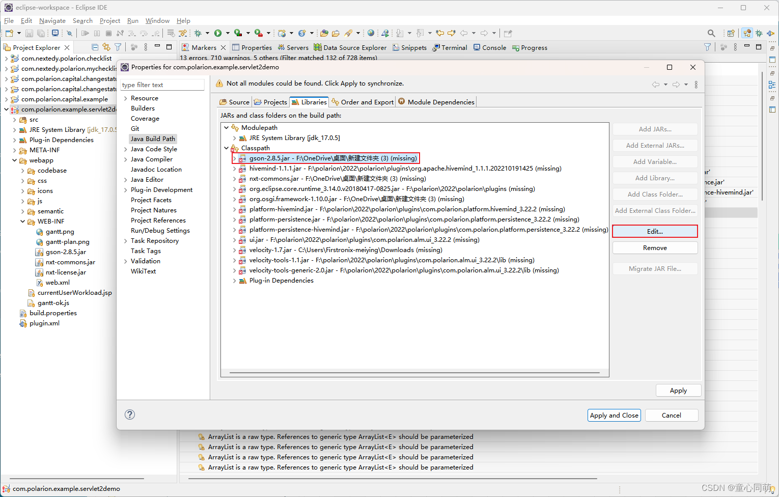 重新编辑所有找不到的jar路径即可