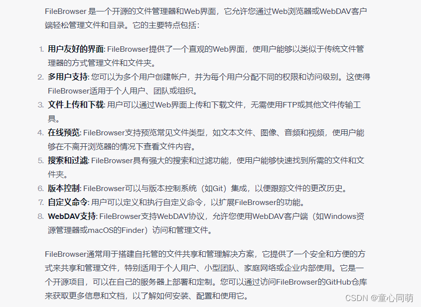 启动:nohup filebrowser -c /opt/filebrowser/config.json > /opt/filebrowser/filebrowser.log & 查看:ps -ef | grep -i filebrowser 关闭:pkill -f "filebrowser" 注意:启动后光标复原Ctrl+C - 开机启动