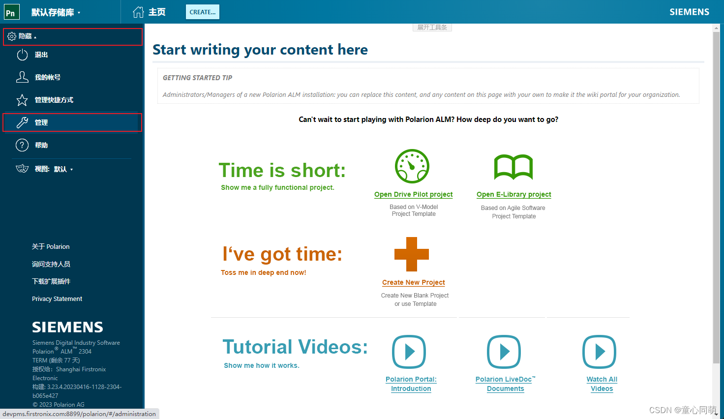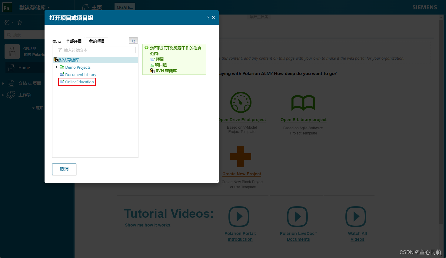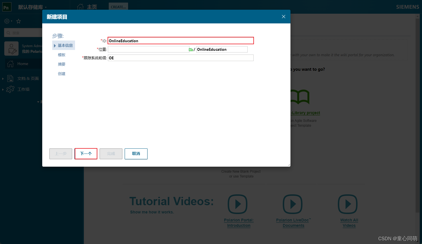 Polarion创建项目