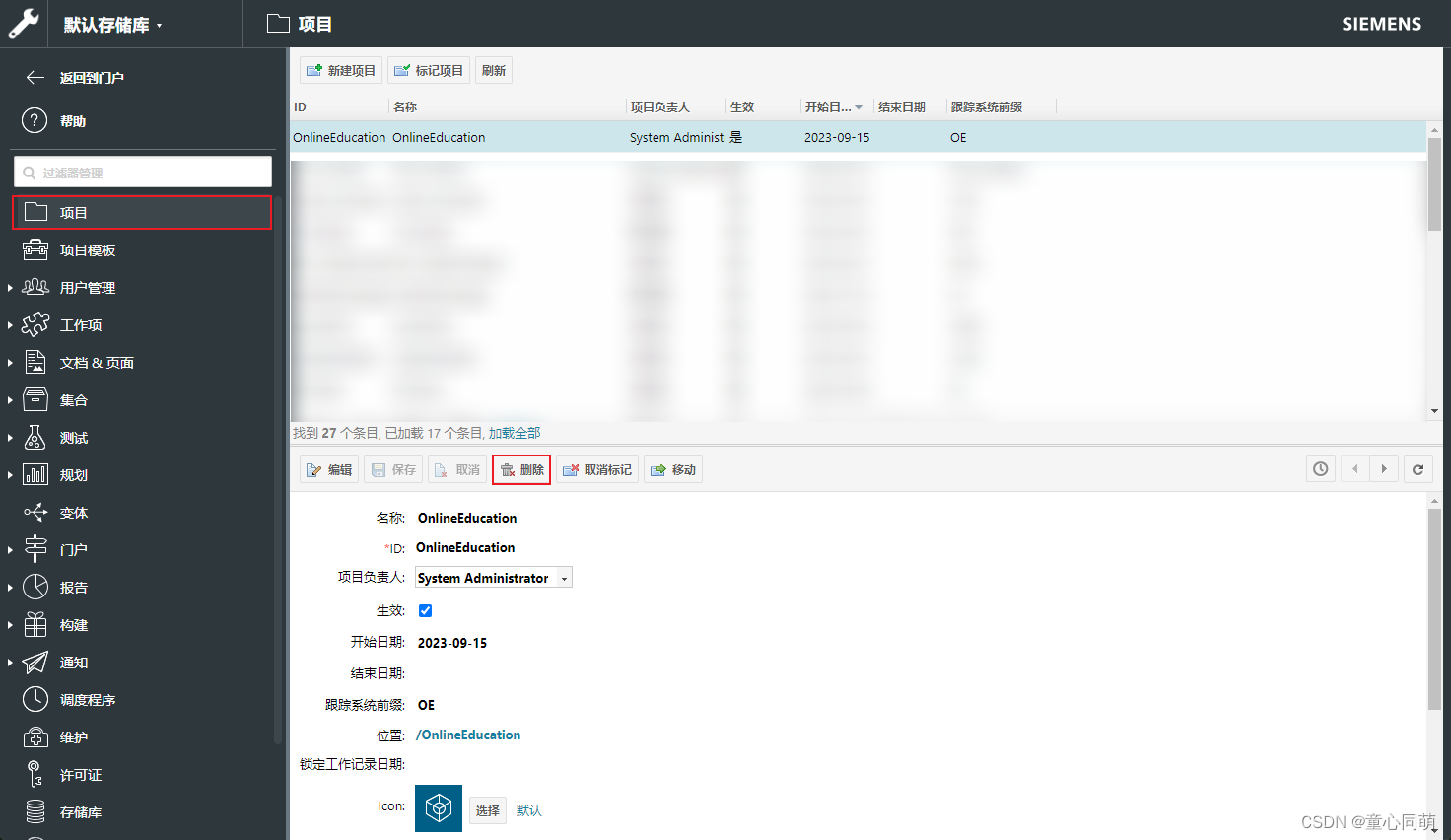 - 管理员删除项目