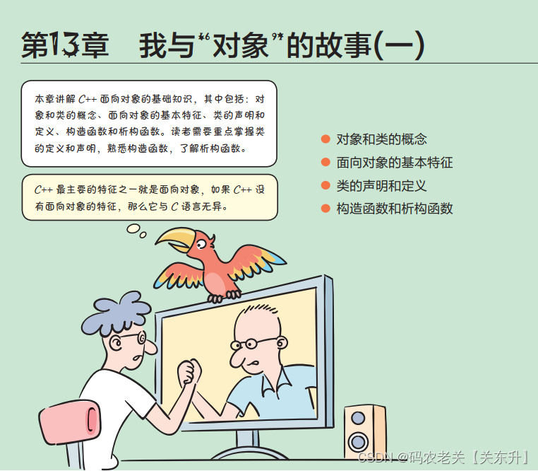 C++中的析构函数是一种特殊的成员函数,它的主要目的是在对象生命周期结束时进行清理工作。析构函数对于资源管理和对象的生命周期至关重要,尤其是在需要释放动态分配的资源时。在《看漫画学C++》一书中我们采用如下的打扫放假漫画隐喻析构函数。