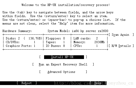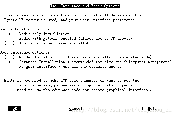 11、HPUXV3系统安装光盘更两张DVD,中间需要更换一次光盘;安装过程重启两次,第一次重启会看到大大的OK字样,第二次重启后需要按提示在交互界面填写相应的信息,或者直接退出在以后配置也可。