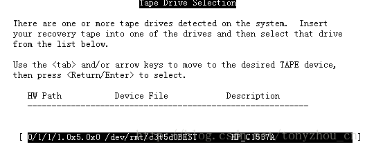 9、如上图(标题8)选择recover from tape则从磁带引导