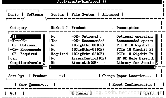 注意:选择软件时CDE界面是不默认安装的,需要选择,否则将来安装ORACLE时就不能出现JAVA界面了。另外镜像软件、glance软件是默认安装的,ignite软件需要选择安装。其它软件根据需要选择。