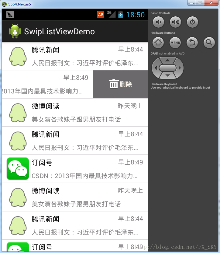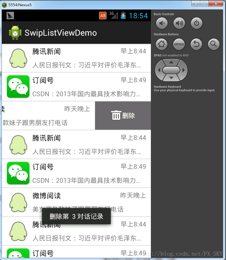微信对话列表滑动删除效果很不错的,借鉴了github上SwipeListView(项目地址:https://github.com/likebamboo/SwipeListView),在其上进行了一些重构,最终实现了微信对话列表滑动删除效果。