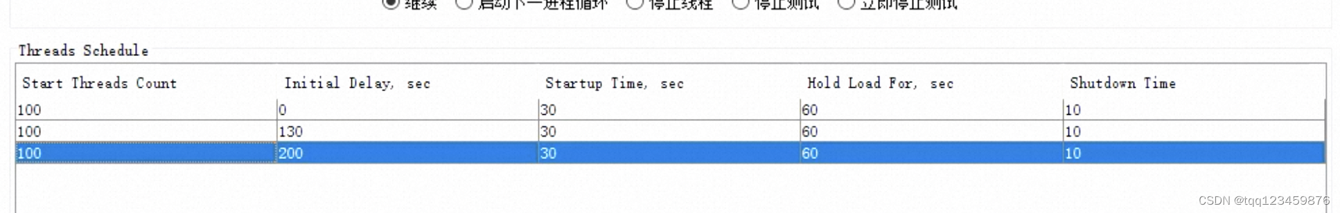 如果initial delay,sec 小于上一行的,则说明场景中存在了一些线程没有停止