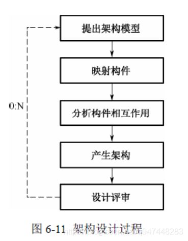 虚框部分是架构的实现过程。整个实现过程是以复审后的文档化的架构说 明书为基础的,每个构件必须满足软件架构中说明的对其他构件的责任。