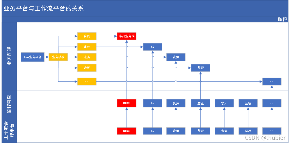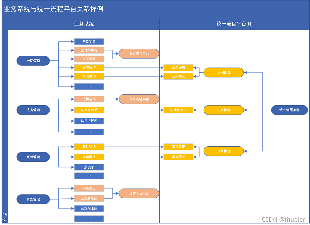 所以业务系统与统一流程平台在系统级是多对多关系,在功能级是一对一关系。