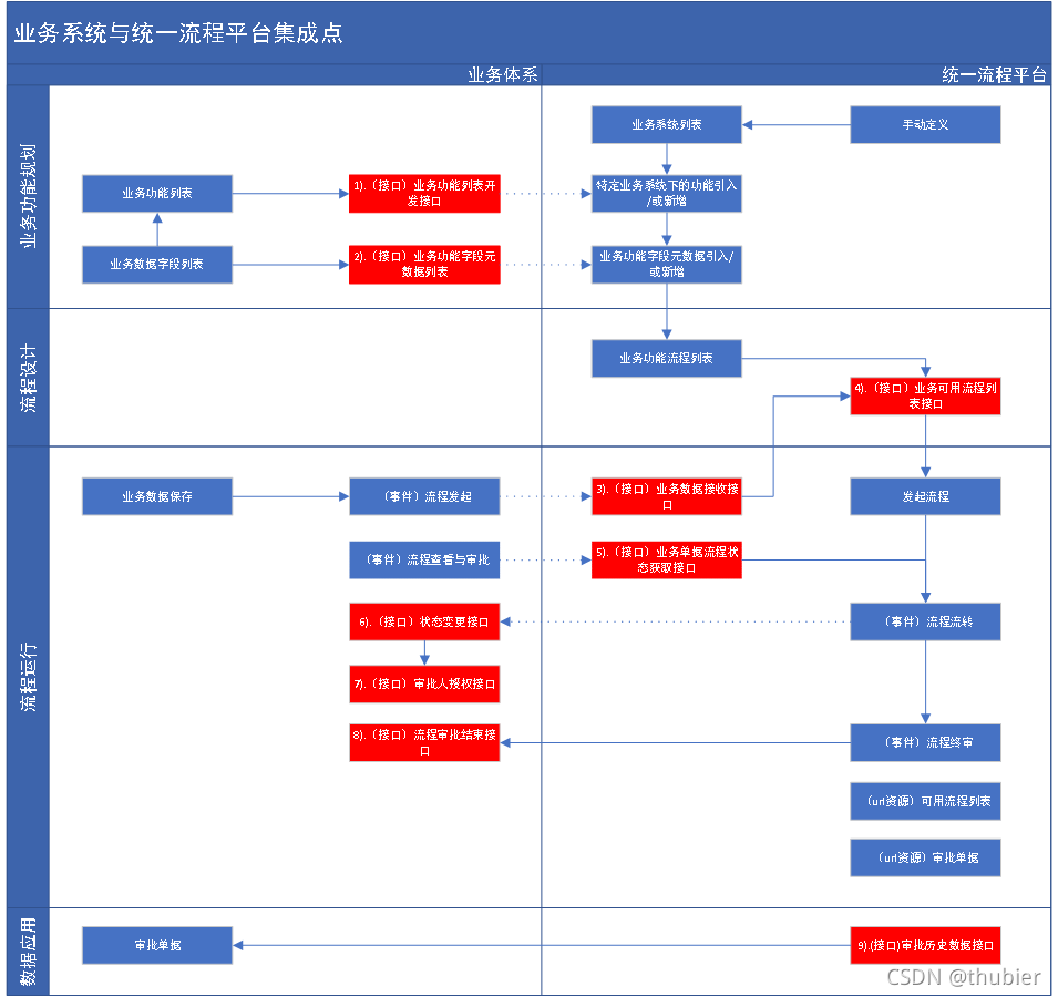 在2.1中,我们发现统一流程平台与业务系统直接是存在共同信息的----业务功能。