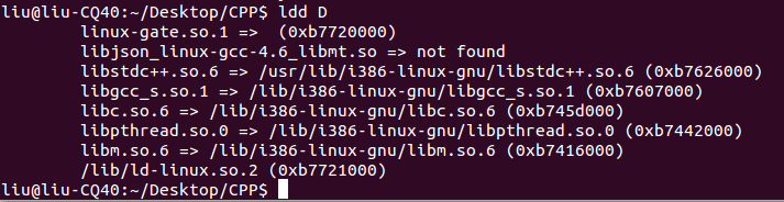 可以通过ldd命名来查看可执行文件依赖的动态链接库,如下(其中D为可执行程序):