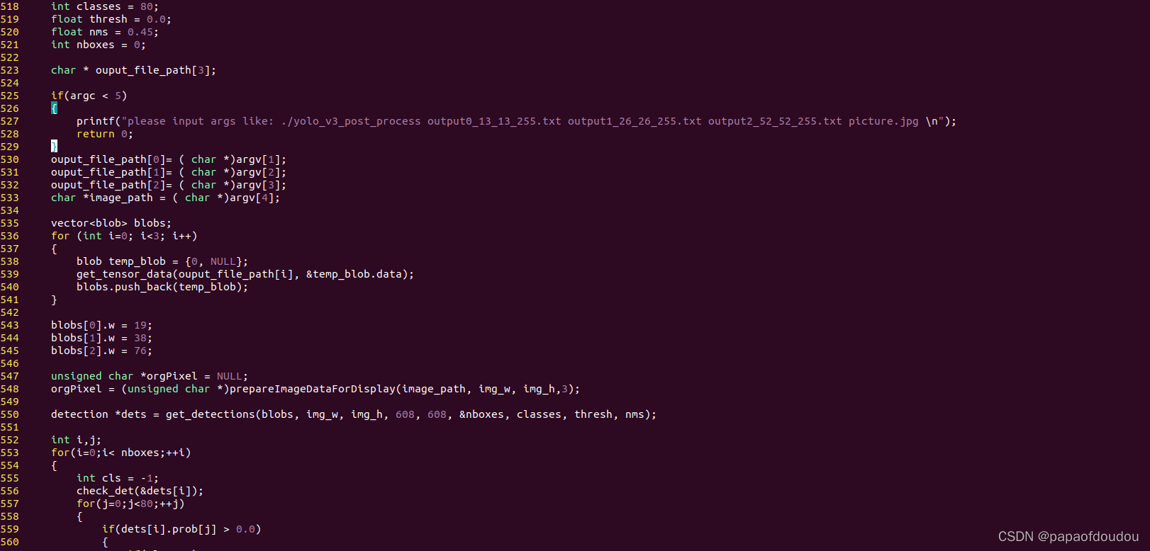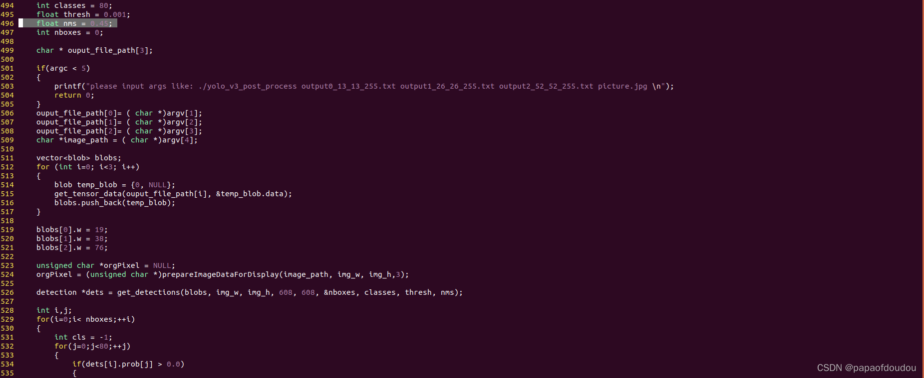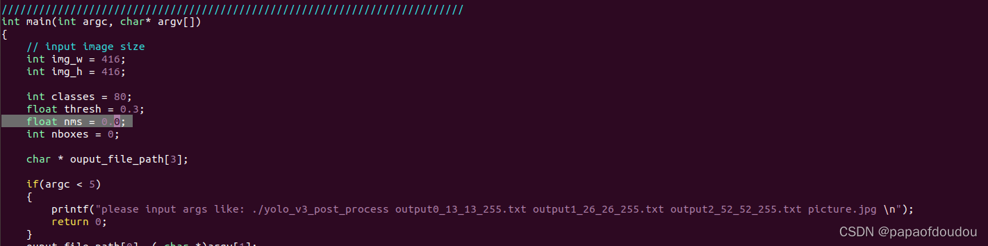 首先看一下这份代码,在后处理参数的初始化过程中, 可以看到有对NMS参数的初始化,NMS一般设置在0.3-0.5之间,他是对IOU的一种计量,这里设置为0.45。