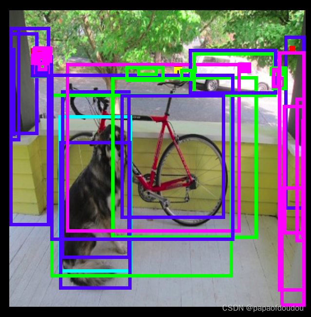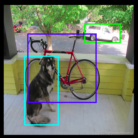 输入图片是416*416的,经过后处理后,得到的画框图像如下图所示: