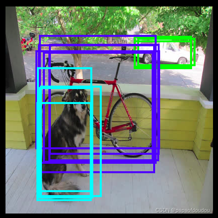 修改496行和534行,得到如下检测结果,对比两幅图,threshold和NMS设置不合理的表现是不同的。