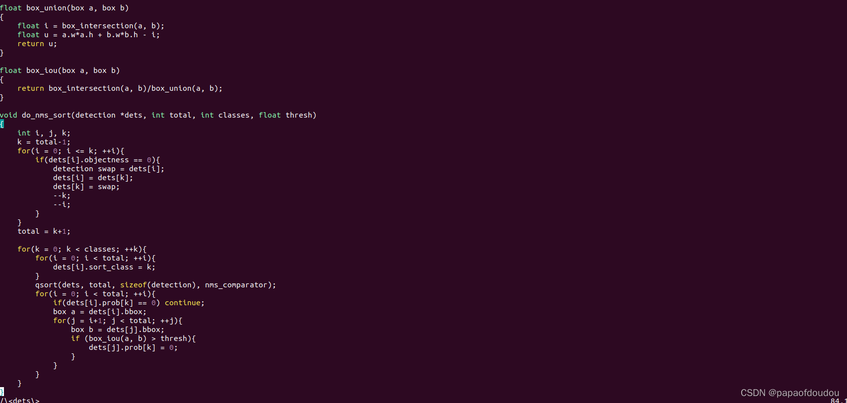 以C语言实现版本为例,NMS的实现如下: