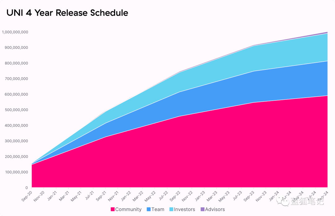 四年之后,永久性的通胀率为每年2%,目的是确保Uniswap的可持续性,以及Uniswap持有者能够获得被动性的收益。