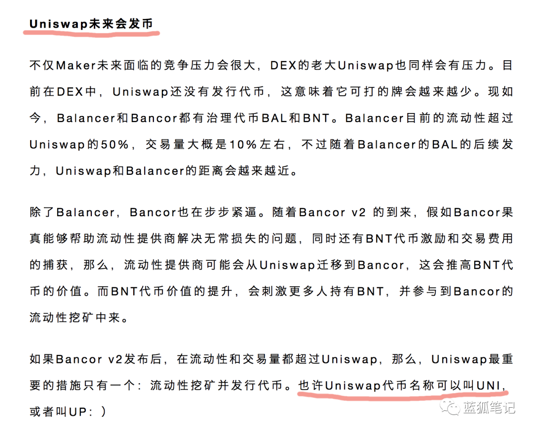 (今年6月16日预测Uniswap会发币,其代币名为UNI或UP)