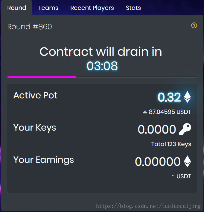 3.在每一轮结束时最后一位买到Key的玩家赢得奖金,奖金占奖池的48%;Key持有者/P3D持有者也会获得报酬 |